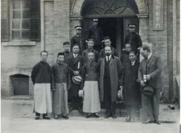 1926年,瑞典王儲阿道夫夫婦訪華時期,安特生博士前往北京大學(xué)研究所國學(xué)門拜訪中國學(xué)者時合影。前排右一為安特生,前排左二為黃文弼,后排右二為徐炳昶。(圖源自收藏家,授權(quán)使用)