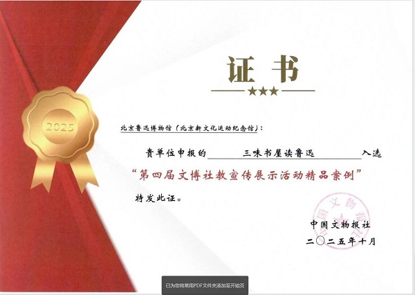 我館“三味書屋讀魯迅”項目獲“第四屆文博社教宣傳展示活動精品案例”獎