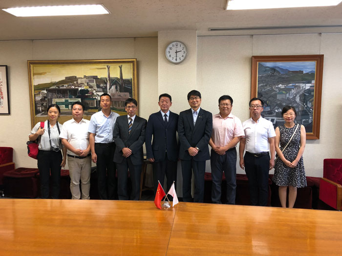 李戰(zhàn)崎一行拜會長崎市市長田上富久并合影