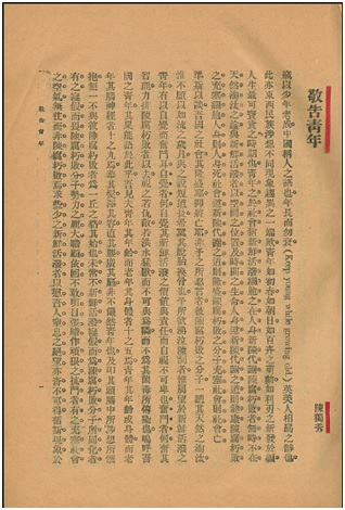 陳獨(dú)秀為《青年雜志》創(chuàng)刊號(hào)撰寫(xiě)的發(fā)刊詞《敬告青年》