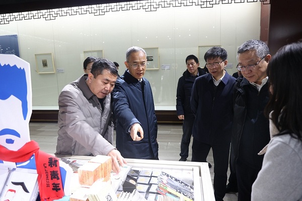 開幕式結(jié)束后,領(lǐng)導(dǎo)和嘉賓參觀了展覽,并考察了“新青年”系列文創(chuàng)產(chǎn)品。