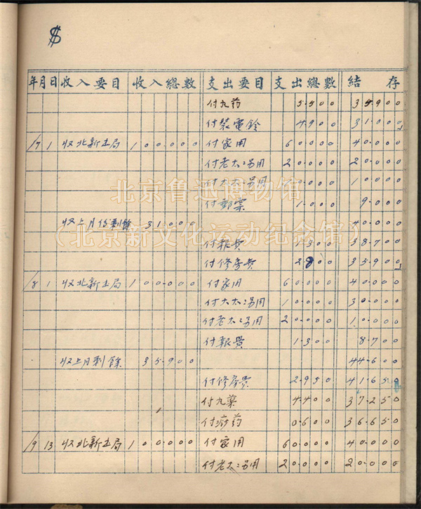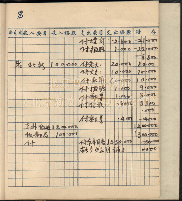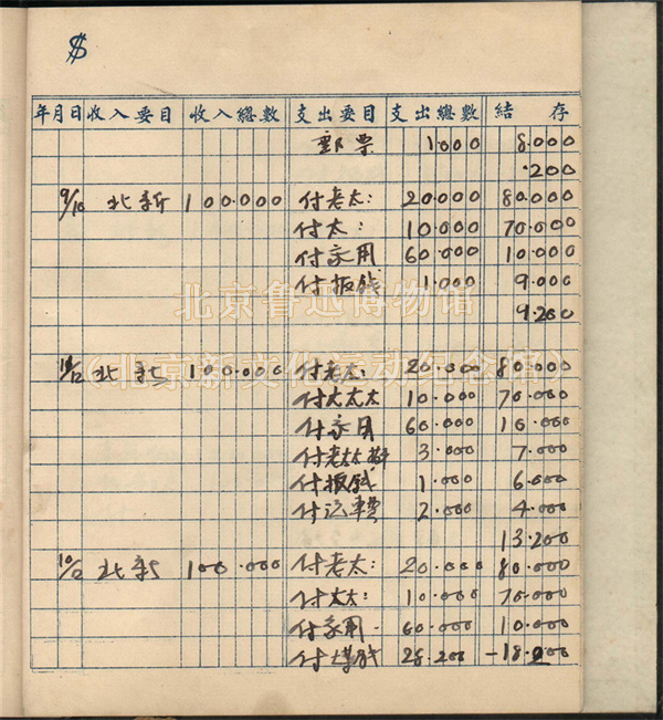 名稱:魯瑞 朱安家用帳(北新支付款項使用帳目)