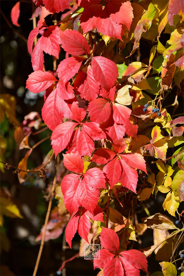 抬眼望去,熟透的柿子掛滿枝頭,與忍不住飛上前啄食的小鳥相映成趣。再往深處走,一抹鮮艷的紅色出現(xiàn)在視野,這紅、綠、黃三色葉片相互交織成一幅絢麗的畫卷。紅色熱烈奔放,綠色清新宜人,金黃色溫暖明亮,它們交相輝映,讓人陶醉在這美不勝收的秋日景色里。